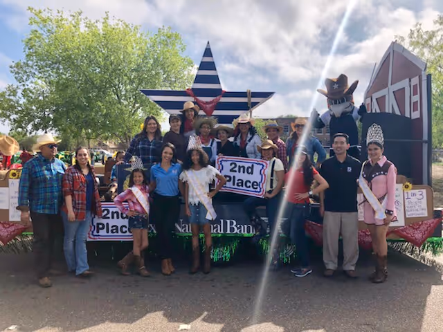 Our Texas National Bank team does it again! We placed 2nd with our float at the 2018 RGV Livestock Show Parade “Educating Youth, Promoting Agriculture.”